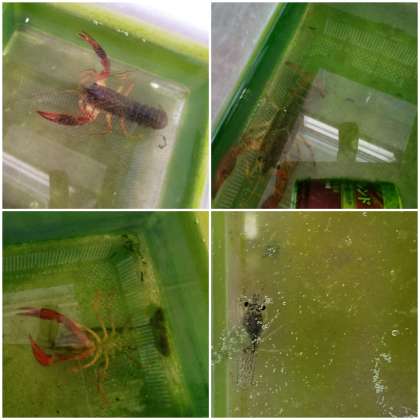 2年生の きょうしつのまえに 「ザリガニ」がいます。