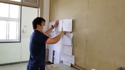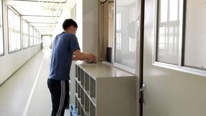 児童の登校日に備えて、清掃や消毒作業を行っています。