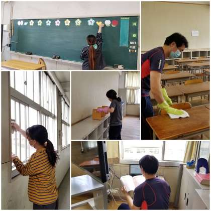 教室や廊下等の清掃・消毒作業など登校日に向けて準備を進めています。