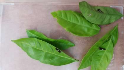 ミカンの木の葉に「アゲハチョウの幼虫」がいたよ!