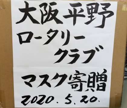 校内の感染防止のためにと「大阪平野ロータリークラブ様」より、マスクのご寄付をいただきました。