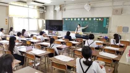 5年生は、文字をていねいに書くことの大切さについて話を聞いています。