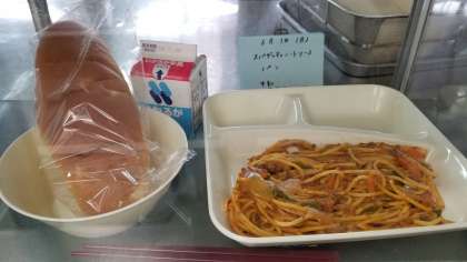 衛生的に給食を食べられるように、子ども達だけでなく教職員も「エプロン・三角巾・マスク」を着用しています。