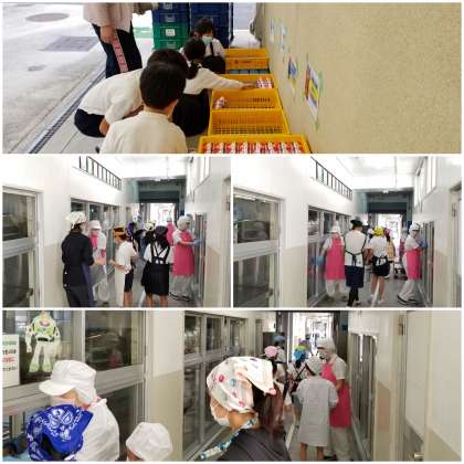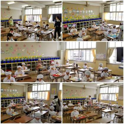 給食当番以外の子ども達にも、給食着(4年生以上は自分のエプロン・三角巾)を毎日持参してもらい、学校全体で衛生面に気を付けていきます。ご協力をお願いいたします。