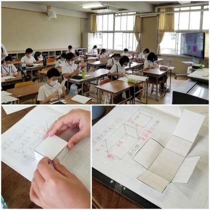 その後、一人ずつ、直方体の展開図を切り取り、実際に組み立てると直方体になることを確かめました。