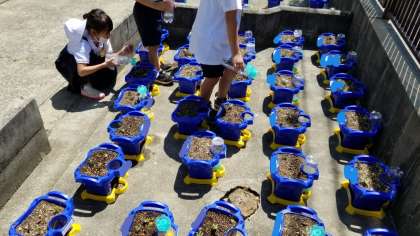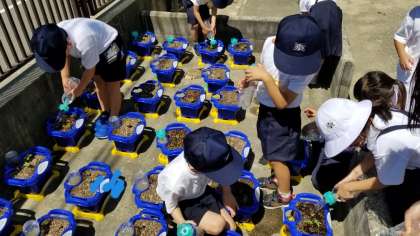 子ども達は、すごいね〜!と言いながら、たっぷりお水をあげています。