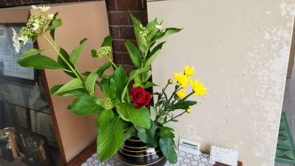 玄関にある花が、登下校時に、子ども達を迎えてくれています。