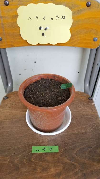 4年生の教室近くには、理科の学習で育てる「へちま」のタネがあります。
