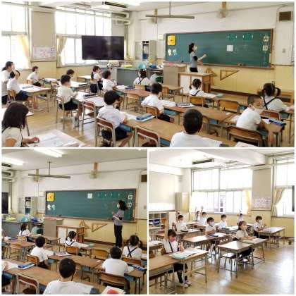 『ち』のなかに…「先生!つがかくれてるよ。」と発見したり、ちのつく言葉は?と問われて「はち」と元気いっぱい発表したり、みんなとっても頑張っています。