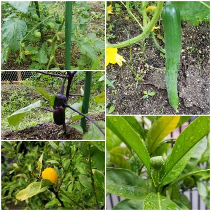 ナスやトマト、きゅうりができています。