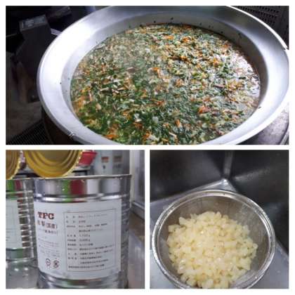 今日の献立は、「えびのチリソース・中華スープ・和なし(カット缶)・黒糖パン・牛乳」でした。