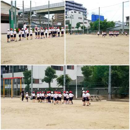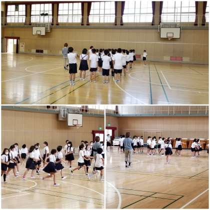 先生が移動した先に、ささっと動いて並ぶことができるように練習しています。