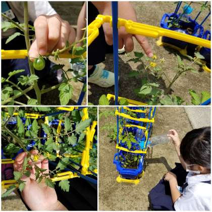 2年生が生活科で育てている「ミニトマト」