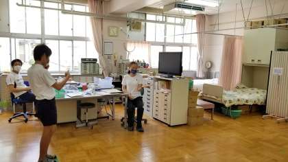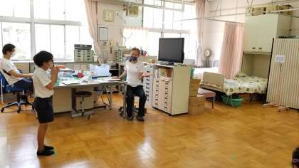 保健室内が、密にならないように10人ずつ来室しての検査です。