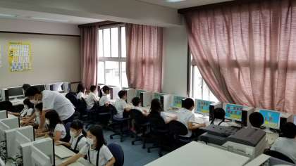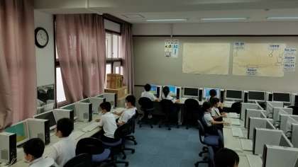 3年生が、パソコン室でダブルクリックの練習をしています。