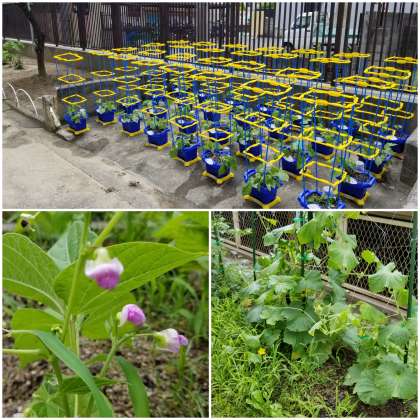 1年生の「アサガオ」に支柱が登場しました。