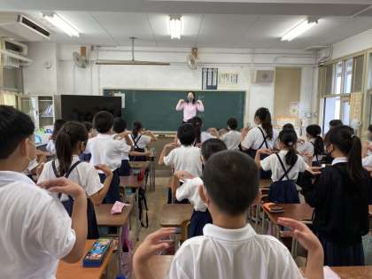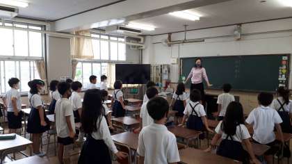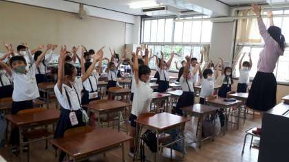 ドレミ体操をしながら、音の高さを感じ取ります。