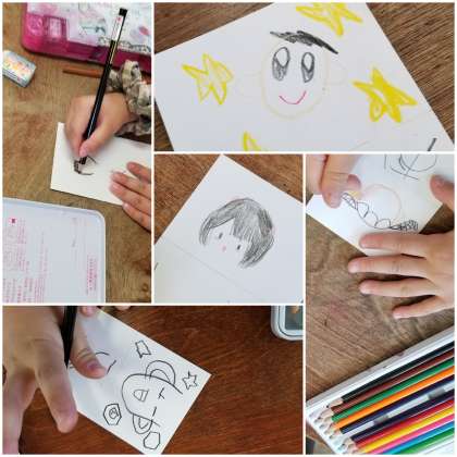 大きな字で名前を書いたり、自分そっくりな顔を描いたりと楽しいカードができています。