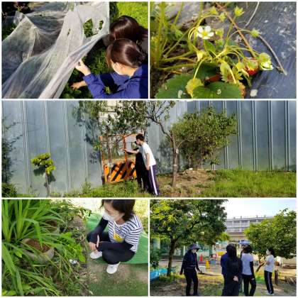 本校教員が、瓜破北幼稚園の緑豊かな園庭へ。
