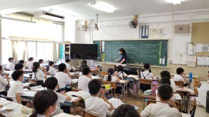 1組では、説明文「ヤドカリとイソギンチャク」について学習しています。