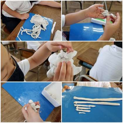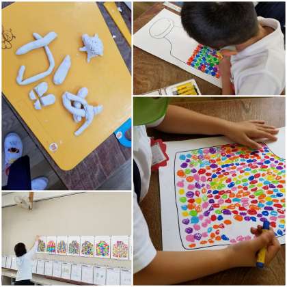 ねんどで思い思いの作品を作ったり、パスでしっかり塗り込んだ絵を描いたりと、とても楽しそうに活動しています。