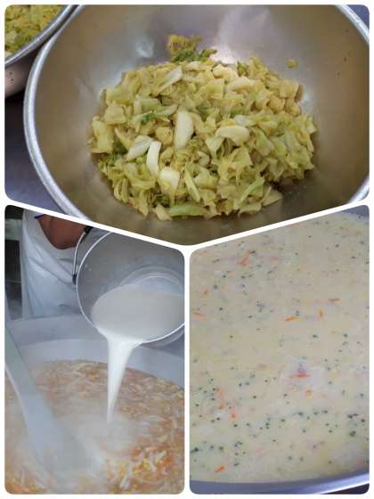 豆乳スープは、ベーコン・野菜をいためてから作っているのでコクやうま味が出ておいしく仕上がっていました。