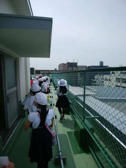 東西南北、どの方角に何が見えるのかを「方位磁針」を使って確認します。