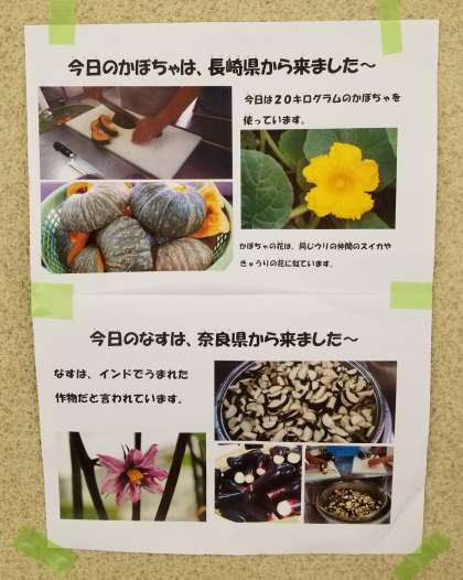 カボチャは長崎県から。ナスは奈良県から届きました。