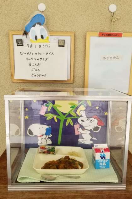展示食の飾りが、7月バージョンに変わったことに気づいた子ども達・・・