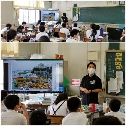 東日本大震災が起こったとき、どんな復興支援があったのかを学習しています。