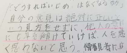 その講話をきっかけに、子ども達は学級でも「いじめ」について話し合いました。