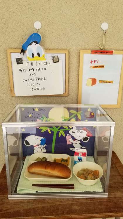 子ども達は、展示食を見て食欲を増進させています。