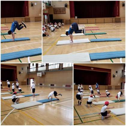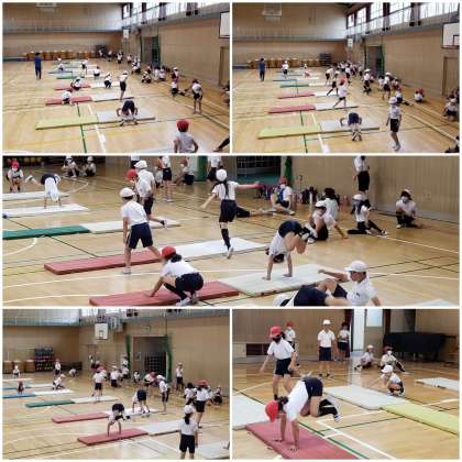 安全に気を付けながら、楽しくマット運動に取り組んでいます。