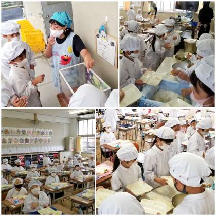教室では、「豚肉の香味あげ」じゃんけんで盛り上がっていました。