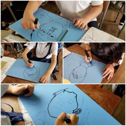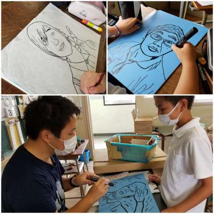 刷り上がった際の白黒のバランスを考えながら、下絵を仕上げていきます。
