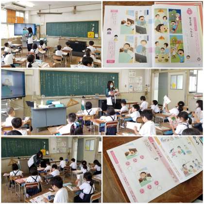 1年生が、道徳の時間に「規則正しい生活を送ることのよさ」について考えています。