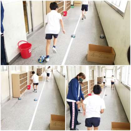 教室前の廊下で走らせる子ども達は、みんなとってもいい笑顔(*'▽')
