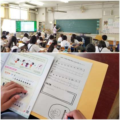 1組は、音楽科で「ハ長調とイ短調」の違いについて学習しています。