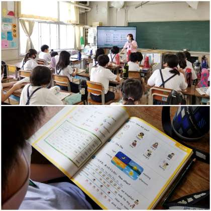 2組は、音声に合わせて1月から12月までを英語で発音しています。