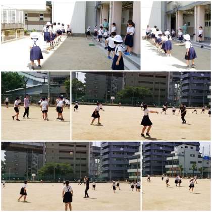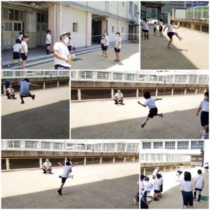 暑くても運動場では、子ども達も先生も元気いっぱいに遊んでいます。