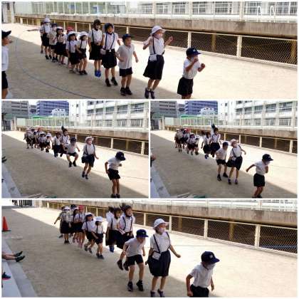 「子どもはすごいなあ。暑さに負けずに走り回ることができて。」と教職員の会話です。