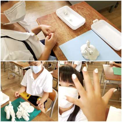 「先生見て〜!」と自分の作品の仕上がりに満足そうな子ども達です。