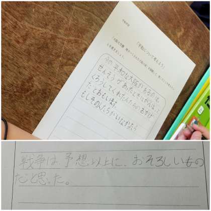 終戦後、二度と戦争をしないと努力した先人のおかげで平和な世の中になっていることに気づく子どもが多くいました。