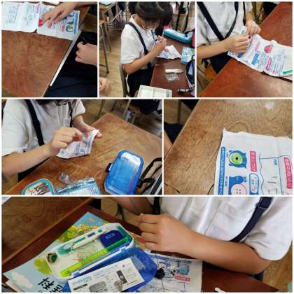 針に糸を通すことに悪戦苦闘している様子にどきどきしましたが、ていねいにボタンをつけることができていました。