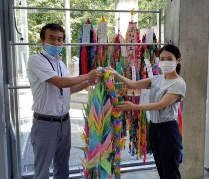 平和学習で取り組んだ、平和への祈りを書いた『折り鶴』をピース大阪へ寄贈しました。
