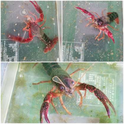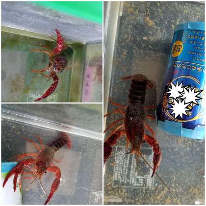 夏休み期間中は、「メダカ」だけでなく、「ザリガニ」も理科室にいます。