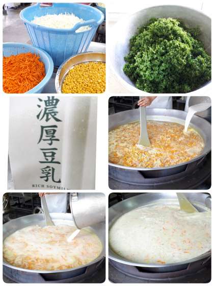 豆乳スープは、じゃがいも・たまねぎ・コーン・にんじん・パセリを使用し、仕上げに豆乳を入れています。