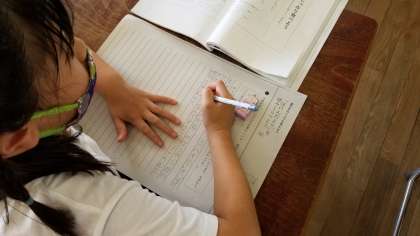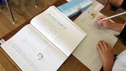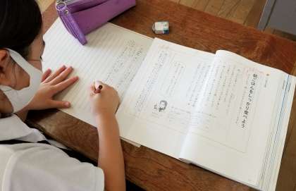 国語科の学習で、2つの記事を読み比べ自分の考えをまとめています。