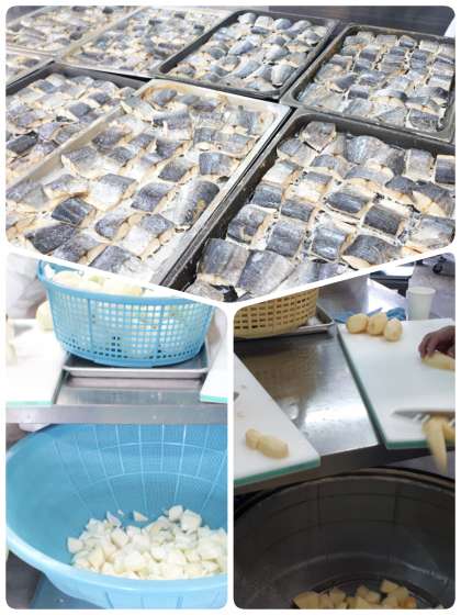 今日の献立は、さごしの塩焼き・豚肉とじゃがいもの煮もの・キャベツの梅風味・ごはん・牛乳でした。