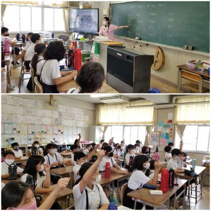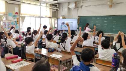 デジタル教科書から流れる音声に合わせて、発音練習もしています。